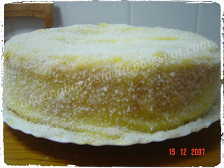 Desenformar sobre um pano humido e polvilhado com açucar.Enrole e deixe arrefecer assim enrolada no pano.